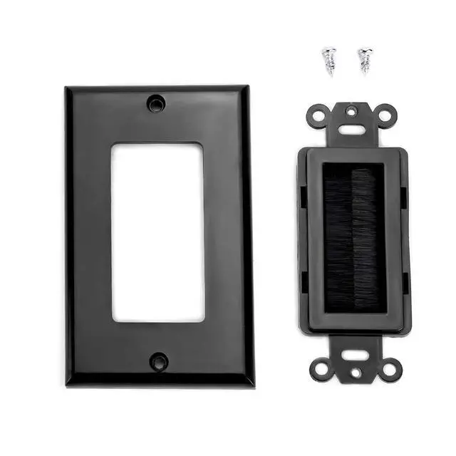 BRUSH WALL PLATES: Brush Wall Plate Black Color Easily Run Cables Through Wall, single brush wall plate easily creates cable access from any wall. hdmi wall plate low voltage mounting bracket wall plate cable pass through black gang plate wire pass through 1 gang wall plate. ^^