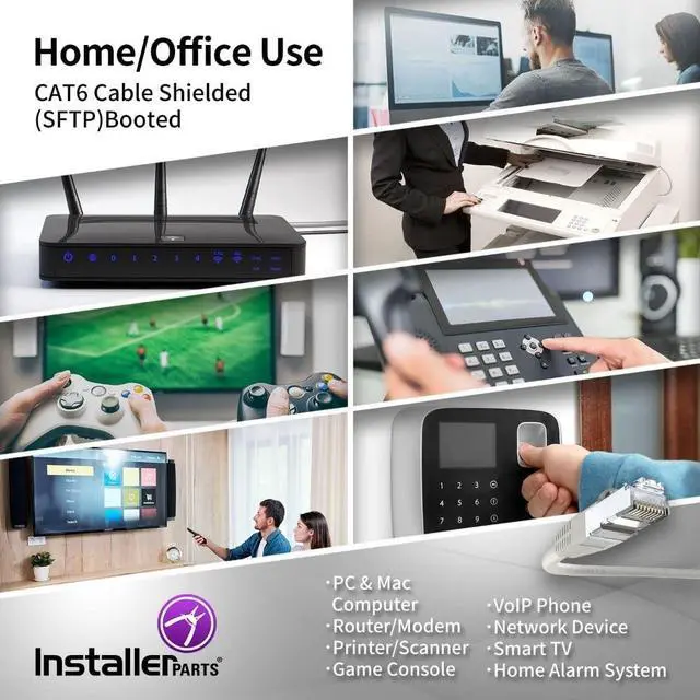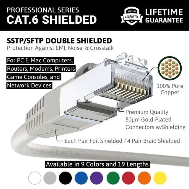 • Shielded CAT6 Cable: InstallerParts SSTP / SFTP (Screened Foil Twisted Pair) patch cables are doubled shielded with an overall braided screen and foil screened twisted pairs for the best prevention of noise, electromagnetic interference and crosstalk.