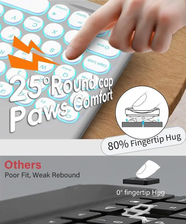 Model Number: A3266/A3267/A3270/A2902/A2903/A2904/A2588/A2589/A2591/A2316/A2324/A2325/A2072. ^^ Comfort-Typing + Easier Pen Holder25 Ergo-Hug circular keycaps wrap you in Cloud-Cushioned Press & Bounce as Cat's-paw. Side holder enables 1-tap pencil accesssmooth for long lectures or creative projects. Perfect for iPad Air 11-inch M4/M3/M2 users whose hands stay fresh and work flows better. ^^ Glow-Comfort Backlit7-color backlit with 3-step dimming (30%/60%/100%) eases eye strain. Enhanced by a dynamic breathing lightflowing gently as you type. This smart combo is ideal for iPad Air 10.9" 4th/5th Gen users working late or studying in dim light. Gentle light, happier eyes.
