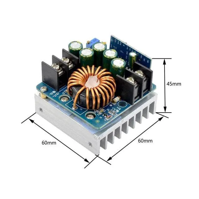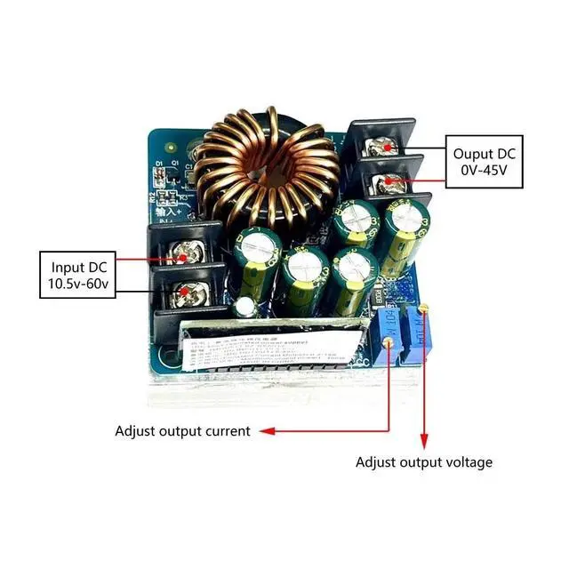 (+1V)Maximum output voltage: about equal input* 0.8O utput constant current: 0.2 -15A (continuously adjustable, heat dissipation shall be strengthened if it exceeds 12A)Maximum output power: 400W (it is necessary to add a fan to forcibly heat the heat sink and magnetic ring)