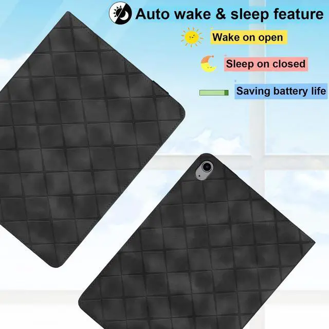Body Protection Case: Premium PU leather exterior and soft microfiber interior offer great military grade protection against daily use, anti-dust and anti-fingerprint; soft TPU back heavy duty protection cover protect the tablet from accidental drop, shock, skid and scratch. Precise cutouts case allows easy access to your camera, speaker, ports, and buttons without removing your tablet. ^^ Auto Wake & Sleep Function & Secure Elastic Band: Magnetic smart case supports auto wake & sleep function, Wake on open, sleep on closed, easy to operate and energy-saving, extend the work hours. Opens and closes like a book to wake your tablet or put it to sleep. Designed with a built-in elastic band, this case offers a secure, comfortable grip, helping kids and adults carry the tablet more easily and safely, reducing accidental drops. ^^ Stand Case with