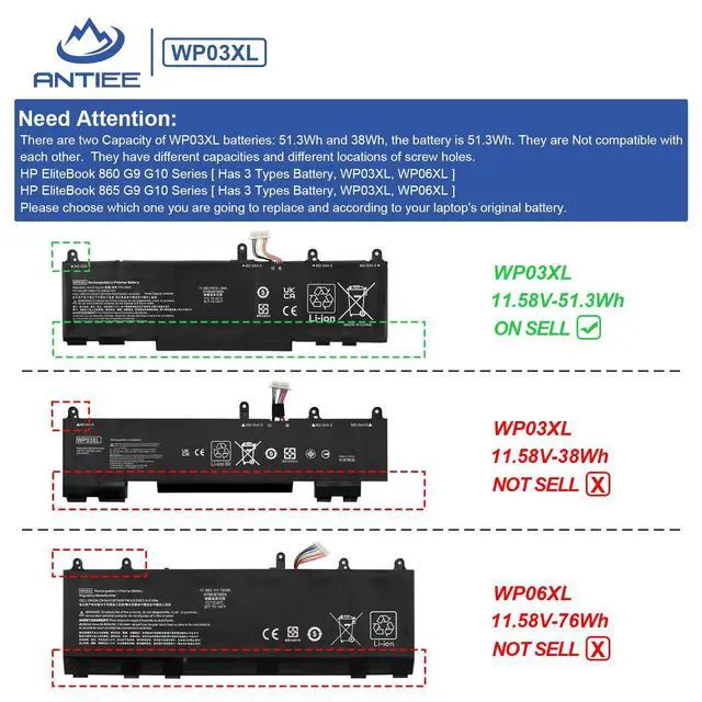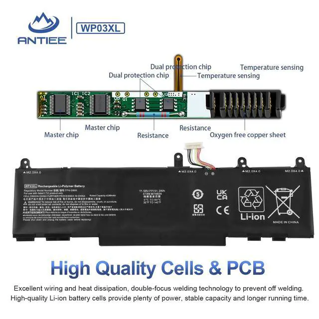 Condition: Brand new, from high quality materials, top circuit boards and smart chip. ^^ Replace Part NumberFit for WP03XL M73466-005 M73468-005 M75019-2C1 M64305-421 L78555-005 HSTNN-OB2J HSTNN-LB8W TPN-DB0Q 31CP6/49/75. ^^ Compatible Laptop ModelsFit for HP EliteBook 830 G9 / 840 G9 / 845 G9 / 860 G9 / 865 G9 / 830 G10 / 835 G10 / 840 G10 / 845 G10 / 860 G10 / 865 G10 Series; for HP EliteBook X360 1040 G9 Series; for HP EliteBook X360 1040 G9 2-in-1 Series; for HP EliteBook X360 1040 G10 Series; for HP EliteBook X360 1040 G10 2-in-1 Series; for HP ZBook Firefly 14 G9 Mobile Workstation Series; for HP Split X2 13-M000 Series; for HP ZBook Firefly 14 G10 Mobile Workstation Series Notebook. ^^ ANTIEE PromiseEach products has undergone rigorous testing to ensure the correct voltage, circuit protection, stable current, low self-discharge and CE / FCC / RoHS Certified for safety. About 500 recharge cycles over the life. ^^ ANTIEE After-salesWe offer 12 months of warranty and 24 x 7 email support. If you have any questions while using your product, please contact us via the "Your Orders" section of your account.