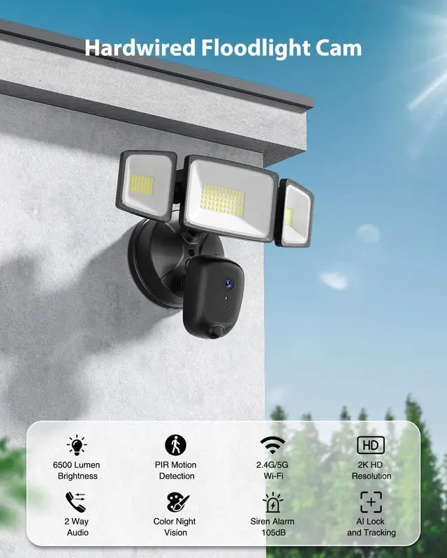 QHD & Full-Color Night Vision: Floodlight camera equipped with a 2K ultra-high-definition lens, captures every detail day and night. Advanced color night vision ensures vivid, detailed footage even in low-light conditions, making it easier to identify people and activities after dark for enhanced home security. ^^ Outdoor Smart &