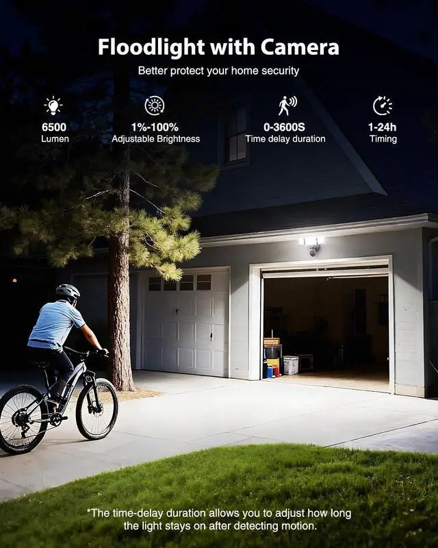 Security Floodlight Camera: Bright, dimmable, and intelligent, this 6500LM floodlight camera delivers ideal illumination for daily use while acting as a powerful security deterrent. Users can customize brightness levels, set timers, or enable motion-activated triggers to receive real-time alerts and activate a 105dB siren to ward off intruders or unwanted animals. ^^ Motion Detection & Custom Privacy Zones: This 55W flood light camera equipped with highly sensitive PIR motion detection and built-in AI that accurately identifies people, vehicles, and pets while filtering irrelevant motion to reduce false alerts. You can adjust sensitivity and define monitoring zones in the Atfoyer app to avoid recording private areas such as a neighbors yard or public pathways. ^^ Secure Dual Storage & Encrypted Connectivity: Save footage locally on a 8-256G SD card (sold separately) or securely in the cloud (required subscription). The security camera outdoor connect easily via 2.4GH z Wi-Fi for stable operation, offering both convenience and full data security. ^^ Real-Time Two-Way Talk & Voice Assistant Compatible: LED flood light camera with a built-in microphone and speaker for remote two-way communication through your phone. Talk to visitors, delivery personnel or warning intruders anytime from anywhere. Compatible with Alexa and Google Assistant, enabling voice control for a smarter and more convenient security experience.