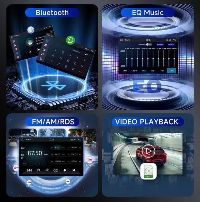 ^^ Enhanced Audio Hub: Stay connected and entertained with built-in Bluetooth for hands-free calls and wireless music streaming. Access FM/AM Radio with RDS ( 87.5 -108MHz) for live traffic updates, news, and music stations. Personalize your drive with EQ Sound Effects, allowing custom equalizer adjustments for rich, crystal-clear audio tailored to your preferences. ^^ Rear Camera And