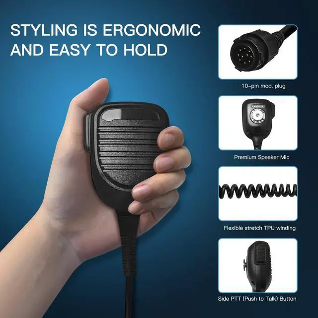 Use: PTT (Push to Talk) button easy to operate. Styling is ergonomic and easy to hold. Mic clip hanger with 2 screws are included and easy for installing.