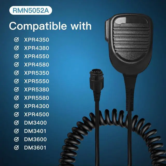 Compatible Information: Replacement for RMN5052A RMN5052 Standard Compact Handheld Speaker Microphone. Compatible with XPR4300 XPR4350 XPR4380 XPR4550 XPR4580 XPR5350 XPR5550 XPR5550E XPR5380 XPR5380E XPR5580 XPR5580E XPR4500 DM4400 DM4401DM4600 DM4601 XiR M8620 XiR M8628XiR M8660 XiR M8668 XiR M8660i XiR M8668i and more ^^