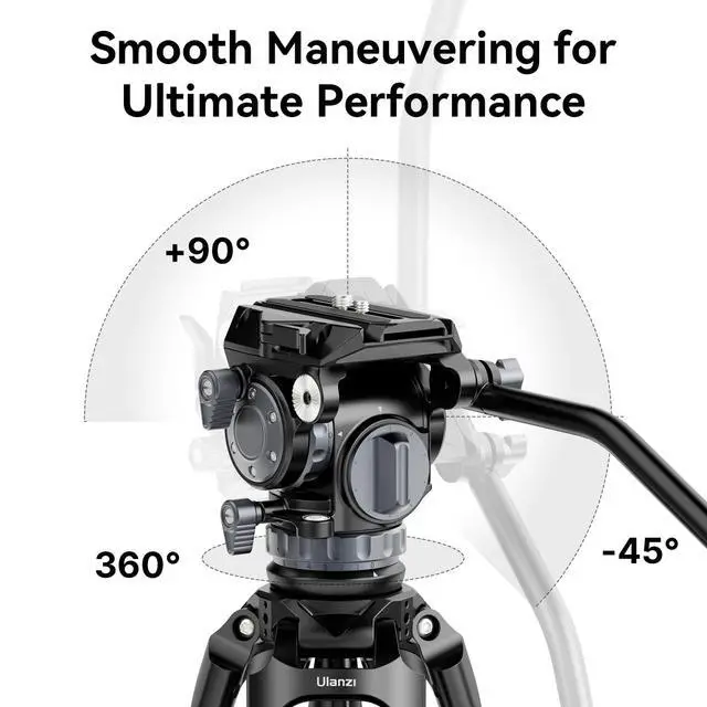 Professional Camera Tripod VIJIM TT48 Pro Video Tripod Aluminum alloy construction with strong telescopic legs tubes and middle spreader, with interchangeable wide feet and spike feet, depending on terrain; and a customized carrying bag for better storage, protection, and carrying around. the video tripod has reliable stability and support weight up to 55.1 lb/25kg. ^^ Adjustable Step-Less Damping SystemVIJIM camera tripod comes with professional Video Fluid Head, featuring an adjustable step-less 360 horizontal and +90/-45vertical movements, 10 Step Coun terbalacnce 6-step Pan and Tilt Damping with Locking Knob allows you to pan the camera smoothly at a variety of speeds you desire.