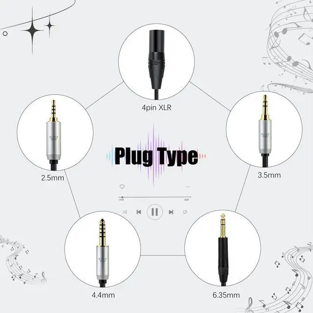 Design Concept: This cable is a 4-core upgraded cable with HD800 to 2.5MM / 3.5MM / 4.4MM / 6.35MM /4 PIN XLR plug models. The cable is made of high-purity oxygen-free copper, providing a sharper bass response through higher linearity and resolution.