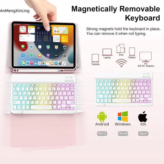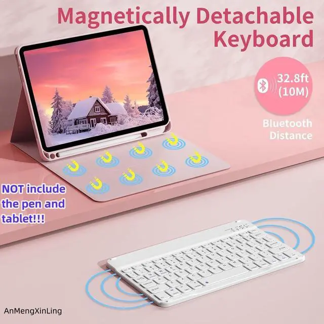 Magnetically Detachable KeyboardFlip Case comes with a detachable magnetic keyboard. The ultra-thin and lightweight magnetic keyboard can be firmly attached to the case. You can move and change the keyboard position at any time according to your usual preferences.