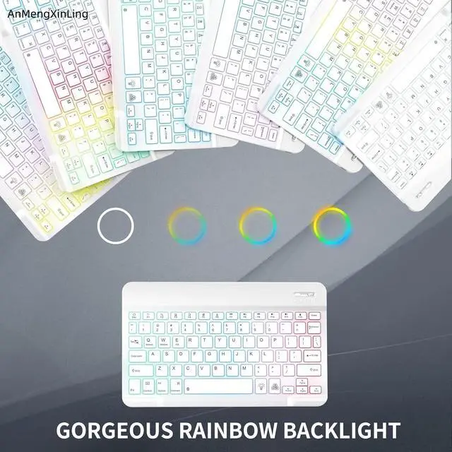 7 Color Rainbow BacklightRGB rainbow backlight keyboard, 7 adjustable backlight colors, breathing light backlight mode can be automatically switched. The backlit keyboard can be used in the dark, providing a comfortable typing experience.Keyboards for mobile phones