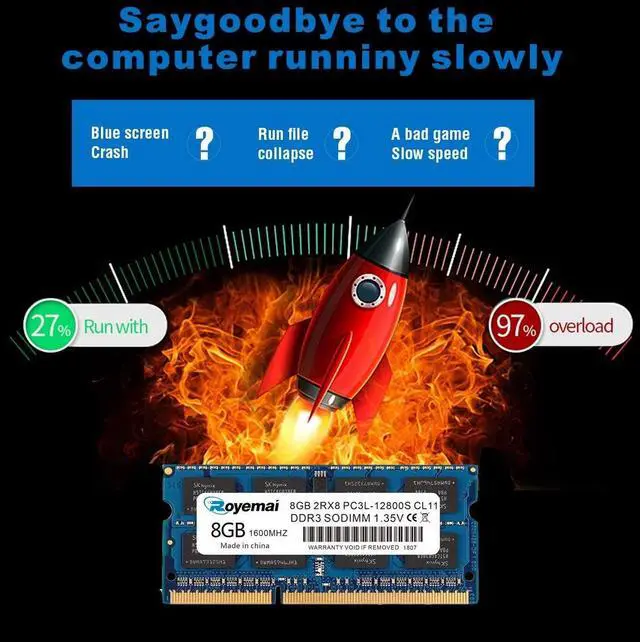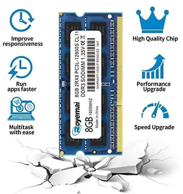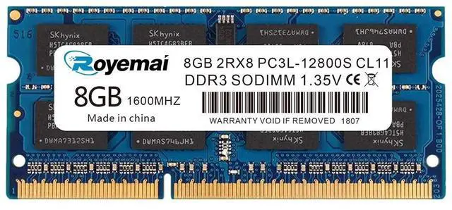 DDR3 8GB 1600MHz SODIMM RAM PC3-12800, DDR3L 1600MHz, Unbuffered, Dual Rank, Non ECC, 2Rx8, 204-Pin, CL11, 204-pin memoria ram, apply for AMD, Intel, Mac system. Operate at low voltage 1.35V or high voltage 1.5V and DDR3L/DDR3 1600MHz 12800 type ^^ Advanced ChipsAll DDR3L 8GB ram are high quality ram memory module. Professional company, high-quality materials, more guaranteed product quality ^^ Stable and Durable8GB DDR3L-1600MHz Sodimm, 100% tested for stability, durability and compatibility. We test all rams before shipment to ensure this PC3L-12800 ram works stably and normally ^^ Increases System PerformancePC3 8GB ram will speed up loading times, improve system responsiveness, and increase your system's ability to handle greater workloads.