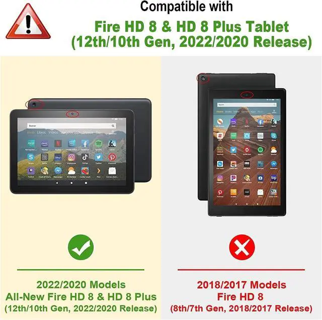 CompatibilityProtective case for All-New Kindle Fire HD 8 & 8 Plus Tablet (12th Generation/10th Generation, 2022/2020 Release) 8, NOT compatible with any other model devices. Please check the model number before purchase.