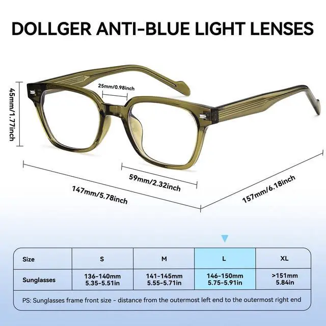 BLUE LIGHT PROTECTION: Dollger blue light glasses use high-tech blue film material lenses. This kind of lens is clear and transparent without yellowing, which can effectively block blue light and restore true colors, protect your eyes from harmful blue light emitted by the screen, reduce the risk of eye fatigue, headache and long-term damage, and is very suitable for people who spend a long time in front of the screen ^^