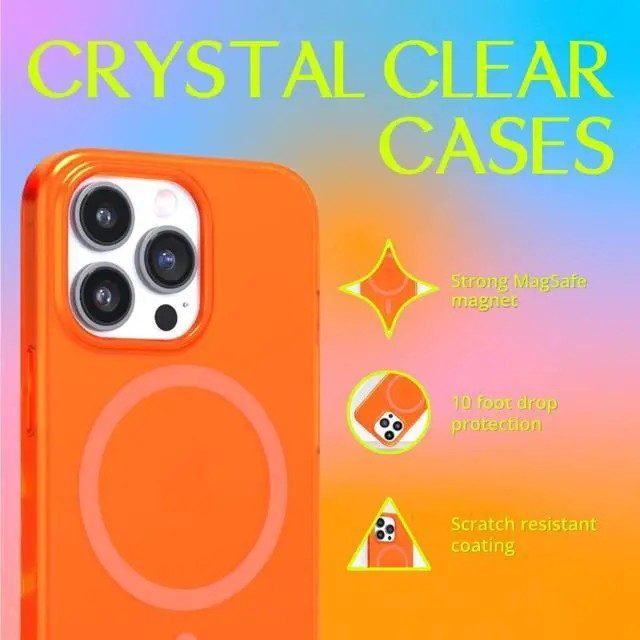 COMPATIBLE WITH MAGSAFE - Our all new iPhone 14 Pro case enables you to enjoy faster wireless charging experience with added protection and sense of style. It features a built-in powerful magnetic ring that offers a stronger hold on MagSafe wireless charger and other Magsafe accessories. ^^ SLIM AND STYLISH - Expertly designed neon clear case for iPhone 14 Pro ensures a perfect fit for your brand new iPhone. This premium protective case comes in a range of vibrant and super bright stylish neon colours. Felony Case offers a wide range of iPhone cases to match every mood and style.
