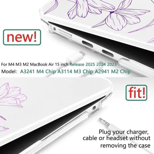 M5 (Model: A3448, 2026 Release). Also fits M4 A3241 (2025), M3 A3114 (2024), and M2 A2941 (2023). Please check the model number "Axxxx" on the bottom of your laptop before purchase to ensure a perfect fit. ^^ [Vibrant Patterns & Long-Lasting Beauty] Features high-definition UV printing with stylish, artistic designs that are resistant to fading, peeling, and scratching. This durable hard shell protects your MacBook Air 15 from daily scuffs and abrasions while showcasing your unique personality with a premium, long-lasting finish. ^^ [Ultra-Slim & Lightweight Design] Crafted from premium polycarbonate, this two-piece snap-on case is tough yet incredibly thin. Weighing only 13.4 oz, it adds zero bulk to your laptop, preserving the sleek aesthetic of the Air 15 while providing a secure, natural grip in your hand. ^^ [Safe Cooling & Precise Access] Fully vented at the bottom for safe heat disbursement to prevent overheating. All ports and features, including magnetic charging port, USB-C, and Touch ID, are easily accessible with precise cutouts. No need to remove the case to plug in your charger, cable, or headphones.