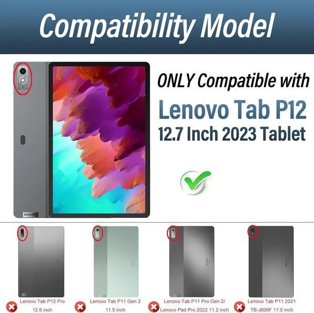 Compatibility ModelExclusively designed for Lenovo Tab P12 12.7 Inch 2023 Tablet. Not compatible with any other devices. Please kindly check the model number before purchase ^^ Well-Protect Keyboard CaseMade of premium TPU leather. The well-madecase gives you a comfortable touch feeling. Premium composition leather exterior provides full protection for your tablet, greatly reduces the damage to your tablet caused by collisions, Soft anti-slip interior protects your tablet from being scratched. ^^ Multiple Angles & RemovableInnovative magnetically detachable wireless keyboard design allows you take it off from your tablet case, to easily adjust the angle of the tablet to your preference.