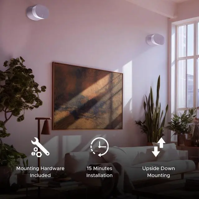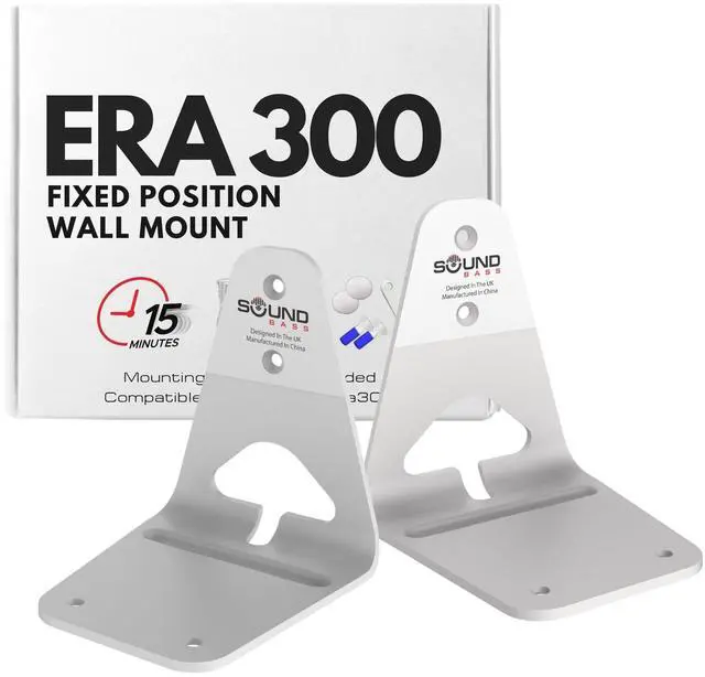 ^^ VERSATILE - Designed with a rear opening to allow easy access of the Era 300 speakers universal microphone switch for voice services. The Soundbass wall mount also allows you to mount your Era 300 upside down. Comes in two colors (black or white) that match your speakers. ^^ HASSLE-FREE INSTALLATION - Quick and easy to install in just 15 minutes or less. The wall mount bracket comes with all necessary high-quality mounting hardware, including wall mounting anchors, rawl plugs and screws. For optimal sound quality, Sonos recommends approximately 2 ft (61cm) of overhead clearance, and at least 8in (20 cm) clearance around the sides of each speaker when using them as surrounds.