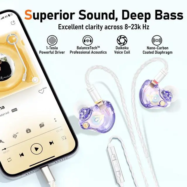 FOR MUSICIANS & AUDIOPHILES Vibes 202ML wired earbuds with a LTN connector and microphone deliver high-fidelity sound for musicianssingers, drummers, or guitaristsand audiophiles seeking natural, detailed HiFi stereo sound. Experience powerful bass, rich mids, and crisp highs, plus spatial depth and crystal-clear calls, immersing you in studio-grade audio. ^^ EXCEPTIONAL HIFI SOUND - Equipped with a 1-Tesla powerful driver and master-tuned professional acoustic chambers, the Vibes 202ML HiFi in-ear monitor earphones deliver precise and detailed sound across a full frequency range from 8 to 23k Hz. The high-purity, silver-plated, Litz-braided audio cable ensures stable and lossless sound transmission for pure, unaltered audio.