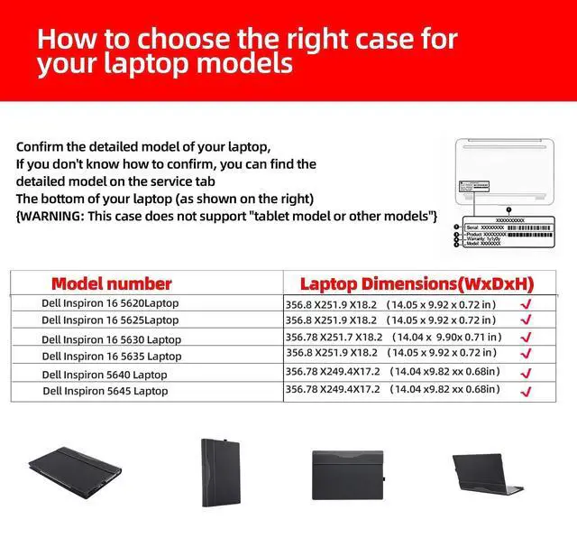 Compatible models: for r Dell inspiron 5645 5640 5635 5630 5625 5620 16" 2-in-1 All Inclusive Drop Case 16" PU Leather Inside Pocket Cover, laptop