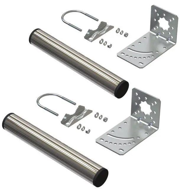 Packing list: 1. Stainless steel Pole 2pcs2. L mounting bracket 2pcs (high quality aluminum) 3. Clamp V Jaw Bracket 2pcs Stainless Steel4. U-Bolt 2pcs Stainless Steel5. Nuts 4pcs Stainless Steel6. Spring washers 4pcs Stainless Steel7. Plain washers 4pcs Stainless Steel8. English User Manual 1pcs