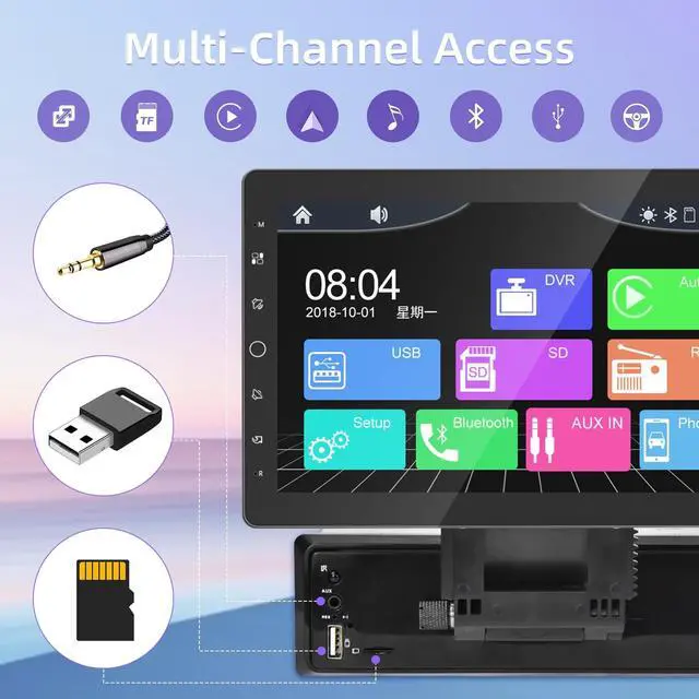 Touch Screen: Single row seat car radio is equipped with a 10.1 -inch 1024*600 LCD capacitive touch screen, which brings you a fantastic visual experience with its large size, 30 full viewing angle and excellent color performance. The special design of the car radio detachable screen is easy to install and remove. Compared to slide-out screen units, the detachable design also separates the single DIN touchscreen from your dashboard, avoiding unwanted bumps or obstructions.