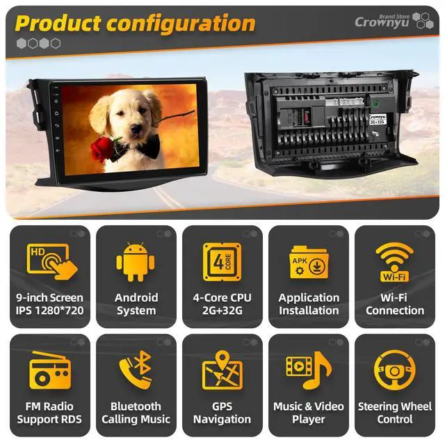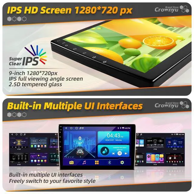 ^^ Rich functionality: This radio has wireless Carplay, Android auto, GPS navigation, FM radio, Bluetooth, Bluetooth music, USB, multi format music player, 1080P video player, WiFi, APPs download & Installation, backup camera, SUB and audio output, AUX audio and video input, external microphone, SWC steering wheel control. ^^ Android operating system, powerful quad-core processor, 2GB RAM, 32GB ROM, 9-inch capacitive IPS Touch screen, resolution 1280 * 720, larger and clearer screen, give you wonderful visual experience. ^^ AHD backup camera with IP68 waterproof rating makes reversing easier and safer. Built-in multiple UI interfaces can be freely switched to your favorite style.