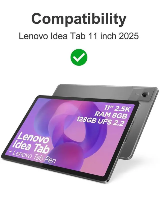 Package Contents: 1 Keyboard Case for Lenovo IdeaTab 11-inch 2025 Model 1 Bluetooth Keyboard 1 USB-C Charging Cable 1 User Manual (Tablet and stylus sold separately)