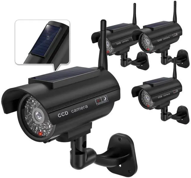 Design: WALI solar fake cameras feature a lifelike design with a flashing red LED light and realistic antenna. Made from high-quality ABS plastic, these fake outdoor cameras are waterproof, making them suitable for both indoor and outdoor use ^^