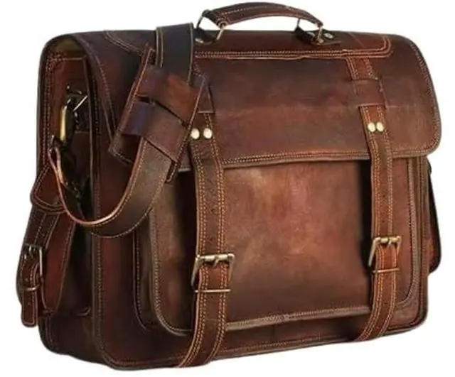 DescriptionPerfect All-Purpose Vintage Handmade Leather Bag This vintage-style leather bag is a timeless blend of craftsmanship, style, and practicality. Made from premium full-grain goat leather and lined with durable canvas, its built to last through everyday use. Ideal for both men and women, this unisex leather bag fits laptops up to 17 inches and is perfect for work, college, travel, or casual outings. Meticulously handcrafted, our leather messenger bags are a great choice for those who value durability, elegance, and artisanal design. Whether you're looking for a classic shoulder bag, a functional satchel bag, or stylish messenger bags for your daily essentialsthis bag checks every box.