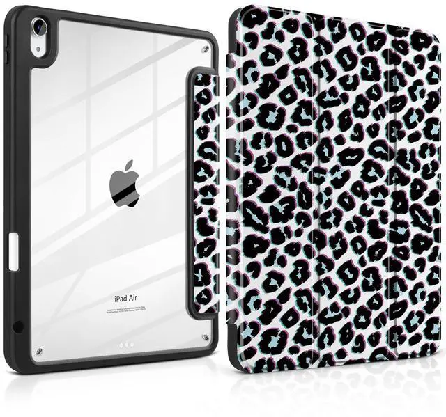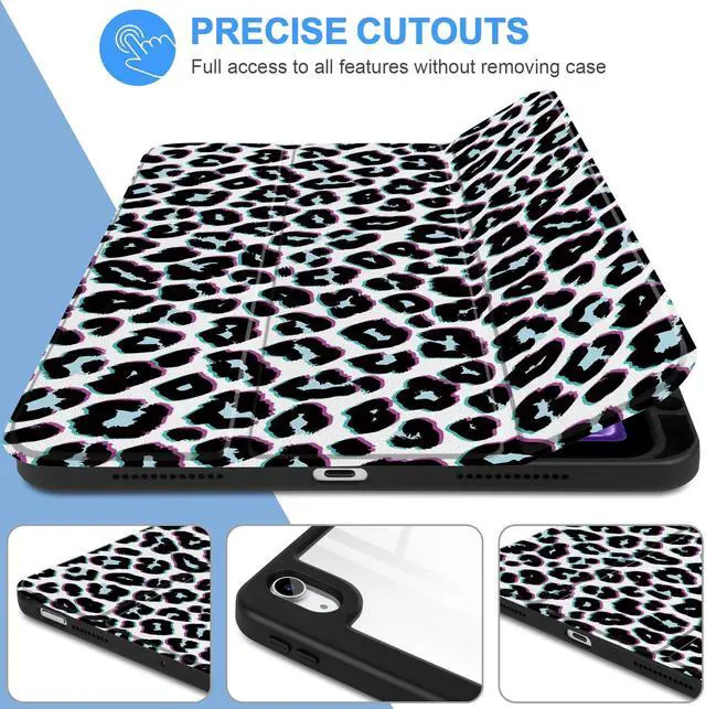 Two Viewing Modes: The magnetic trifold cover folds into stable viewing and typing angles, perfect for watching videos, working, drawing, or studying. ^^ Clear Acrylic Back with
