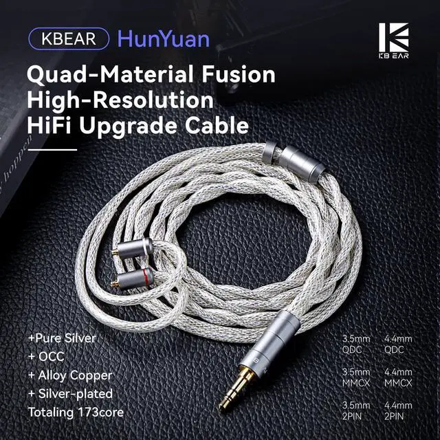 Enhanced Sound Quality hifi Cable With this long kbear hunyuan iem cable, you can easily replace your cable for your earphones. Treble extension, Fast bass response, Full and transparent midsThe sound quality is improved to be more real, brighter and less distortion. The three frequencies can be more vivid through this cable. ^^ "Better Sound Performance IEM Cable kbear hunyuan has 72-core single crystal copper, 3-core high-purity silver, 84-core silver-plated copper, 14-core alloy copper, which has enhances resolution and unlocks the full potential of your IEMs. " ^^ "Fashion Design In Ear Monitor Cable Kbear hunyuan iem cable adopts advanced shielding&braiding, which is soft, skin-friendly, and tangle-resistant.