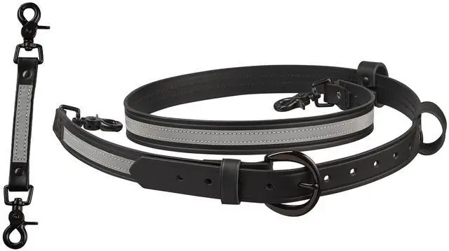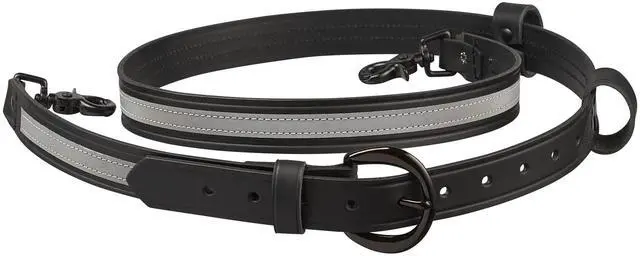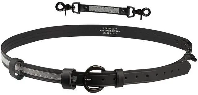 Radio Strap Features: 1.25" wide heavy duty leather. Adjustable Length From 55" - 64"Leather mic loop. Drum Dyed LeatherMates to a radio holder with scissor snaps.