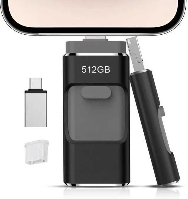 One Click Backup: Experience up to 80 MB/s reading and 40 MB/s writing speed, and photos, videos, documents can be backup to the 512gb flash drive with one click. The phone memory stick provides a simple and quick way to transfer photos and videos. Allows you to free up the memory on your mobile device without using a data cable or iCloud. With this phone photo stick, you dont have to worry about Phone storage anymore! Make file transfer easier. ^^ Thumb