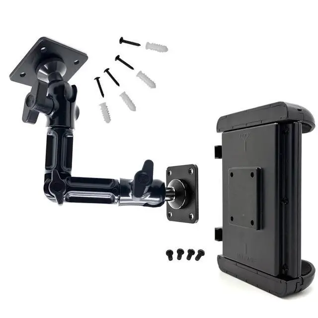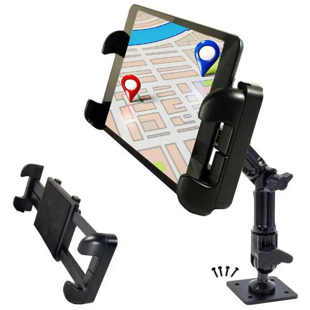 HeavyDuty AMPS Hole Pattern ELD mandate compliant hard install Tablet Durable Adjustable Grip Device Holder & Aluminum Extension Drill Mount for All Tablet range from 7" to 16" in Screen Size. Our innovative design combines a versatile multi adjust aluminum allow drill mount with our patent pending universal Adjustable Tablet Holder providing a safety first hard install secure drill solution for your device. INSTALLATION - AMPS Mounting plate allows a for quick semi permanent installation for any flat surface (drill screws are included). We understand there is no one size fits all solution. With TRUCK DRIVERS we developed a solution that will accommodate a wide range of vehicles.
