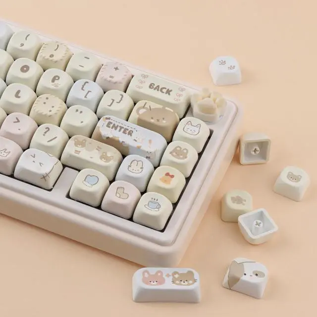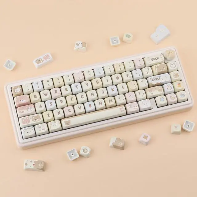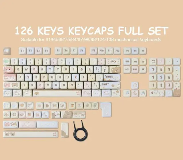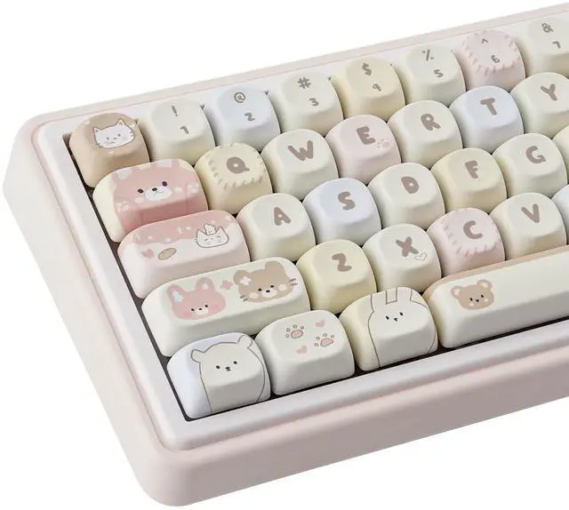 Its unique design gives it higher stability and feel, effectively relieving hand fatigue and enjoying smooth tapping. ^^ Widely Compatible131 keys cute keycaps can be used for most cherry MX switch mechanical keyboards and any keys with "+"Switches, it can fit for 61/64/68/75/84/87/96/98/104/108 mechanical keyboard ^^ NoteUsing the included keycap puller, the precise fit design allows you to easily pull out and replace them. Please contact via email or QA with any questions. (ONLY KEYCAPS, keyboards are not included)