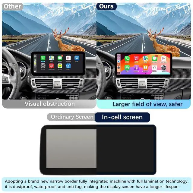 Plug and play, For Mercedes Benz CLS W218 2013 NTG 4.5 System. If you are unsure if this device is suitable for your vehicle, NTG 4.5 means the display LVDS plug is 4 pins. please contact us first. ^^ Adopting an ultra narrow 12.3 -inch (HD1920*720) IN-CELL screen and full lamination technology to eliminate air between screens, it can make the screen look more transparent and enhance the display effect of the screen, The use of full lamination technology for iMac reflection helps reduce the reflection between the display panel and glass by 75%.