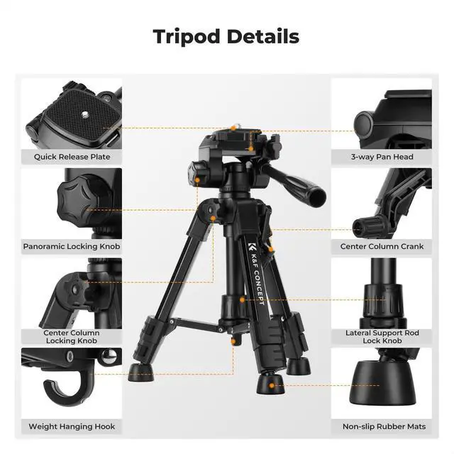 Compact & Lightweight: An ergonomic profile and ABS/aluminum alloy construction keep weight to just 1.41 lbs/638g. Camera tripod folds down to a highly portable 13.6 inches, making it effortlessly stashable and perfect for daily indoor use.