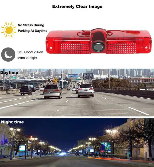 AWESOME Night Vision: Reverse camera comes with 8 infra-red lights to enhance the sensitivity for night drive/parking; The vans brake light rear view camera will be able to see darkness ^^