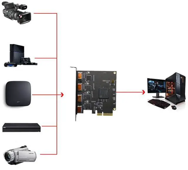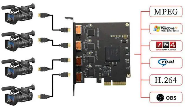 Quad HDMI PCIe Video Capture CardProfessional video processing function, high-quality industrial-grade chip production, super stability, support for simultaneous input of 4 HDMI signalsTechnical