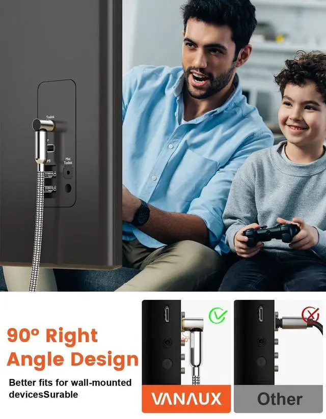 Space-Saving Solution: The 90-degree angled connector allows for a snug fit behind entertainment units or wall-mounted TVs, optimizing space without compromising sound quality.