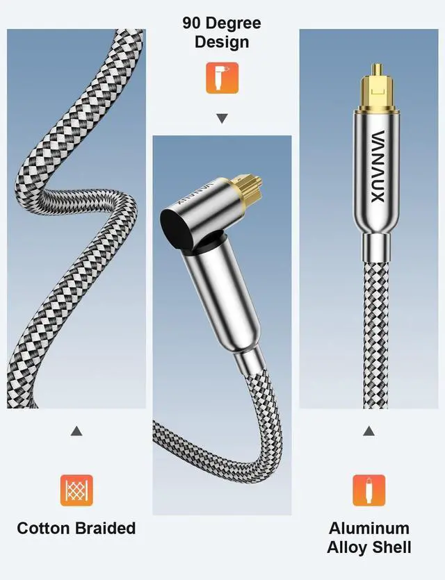 ^^ Premium Audio Quality: Enjoy crystal-clear audio transmission with our 90-degree angled fiber optic audio cable. Perfect for tight spaces, it delivers high fidelity sound without interference.