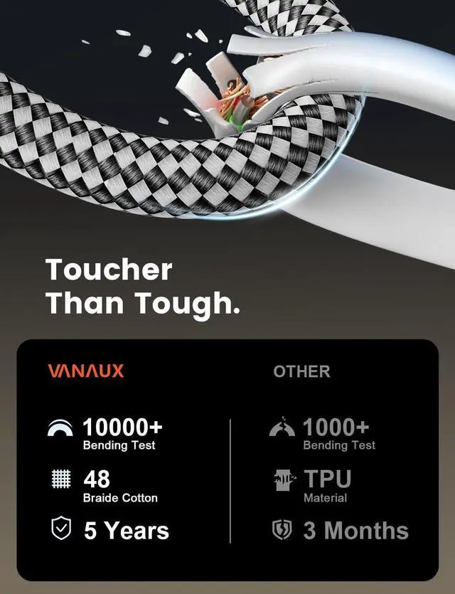 ^^ Tangle-Free Design: Features a cotton mesh braided jacket that prevents tangling and maintains a neat appearance. Ideal for easy handling and storage.