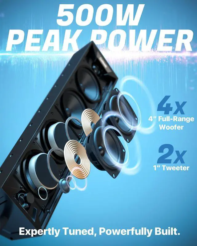 UTV Soundbar System: Experience powerful, crystal-clear sound built for the outdoors. The built-in amplifier outputs up to 500W, Equipped with two 1" tweeters and four 4" full-range speakers, high-volume sound with deep bass and clear highsthe sound quality with deep, punchy bass and crisp highs that remain clear even at highway speeds or during aggressive riding. Detachable Wired Control + Extension Cable - Relocate the controller to your dashboard for front-seat access, even if the soundbar is rear-mounted. ^^