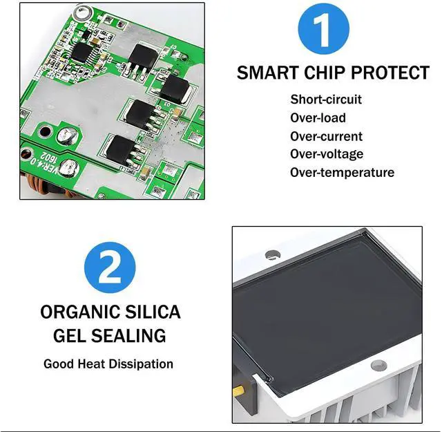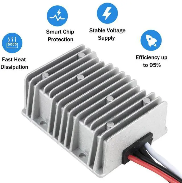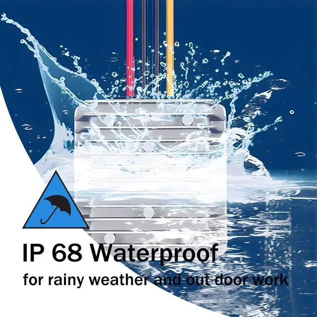 Waterproof IP68 - Engineered to endure diverse environments, the dc converter boasts a waterproof design with a die-cast aluminum shell, which is is anti-shock, moisture-proof and durable. IP68 waterproof level make