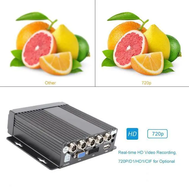 H. 264 compression mode, support 4CH realtime 1080P million pixels AHD input and analog standard definition camera input, or 2CH HD input + 2CH SD input ^^ Support 1080P full HD, 1080P/D1/CIF for optional ^^ Support wide range of voltage input from 8V36V, suitable for most vehicles ^^ Support HDD + SD card Data record storage (maximum support 2TB 2.5 ^^ Exclusive preallocate DVR special file system technology, solving repeatedly wipe cause file fragmentation, and ensure the integrity of the data