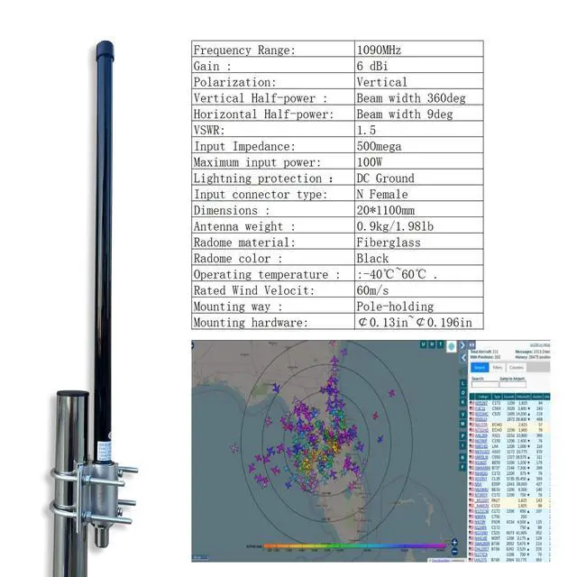 ADS-B 1090mhz antenna has 23.62 inches, gain: 6dBi, radome