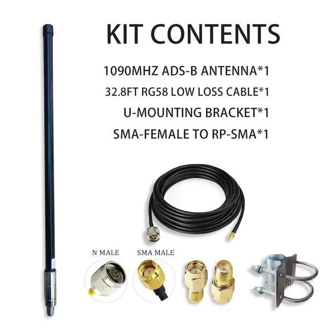 ^^ Packing Listing: 1x1090mhz flightaware Antenna & 1X10-meter N-male to SMA-male RG58 coaxial cable & 1set hardware (u-bolts, nuts, washers, lock washers). ^^ Compatible with radio dongles ADS-B DVB-T DVBT Defined Radios SDRs USB flightaware pro stick NooElec NESDR SMArt - Premium NooElec RTL-SDR stic Aluminum Enclosure and Flight Radar 24. Works with Raspberry Pi and Windows PC.
