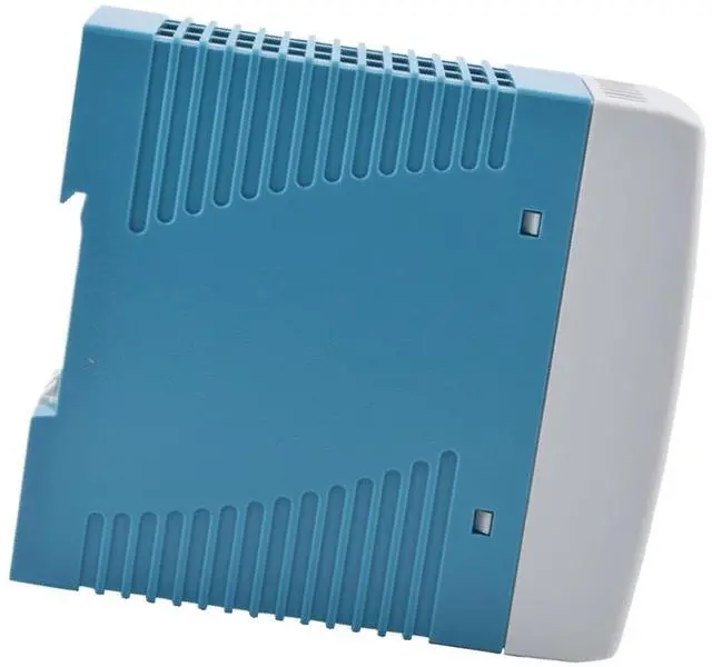 The MDR-60-24 industrial switching power supply converts 85-264VAC/120-370VDC input to precisely regulated 24VDC output, delivering 2.5A continuous current (60W max) with exceptional 1.0 % voltage accuracy. Engineered for harsh environments, it features a wide operating temperature range (-30 to +70) and humidity tolerance (20-90% RH). The adjustable output voltage (24-30V) accommodates various industrial requirements through front-panel potentiometer control.