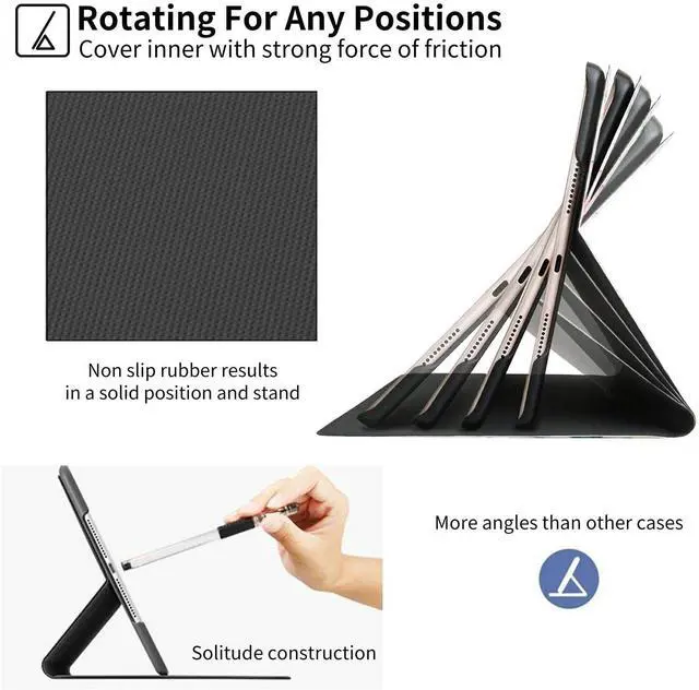 • NON-SLIP & ADJUSTABLE: All-around protection for your iPad. With the anti-slip microfiber lining material, you are allowed to set up the beloved tablet case multiple horizontal stand angles for viewing or typing, no more angle limitation.
